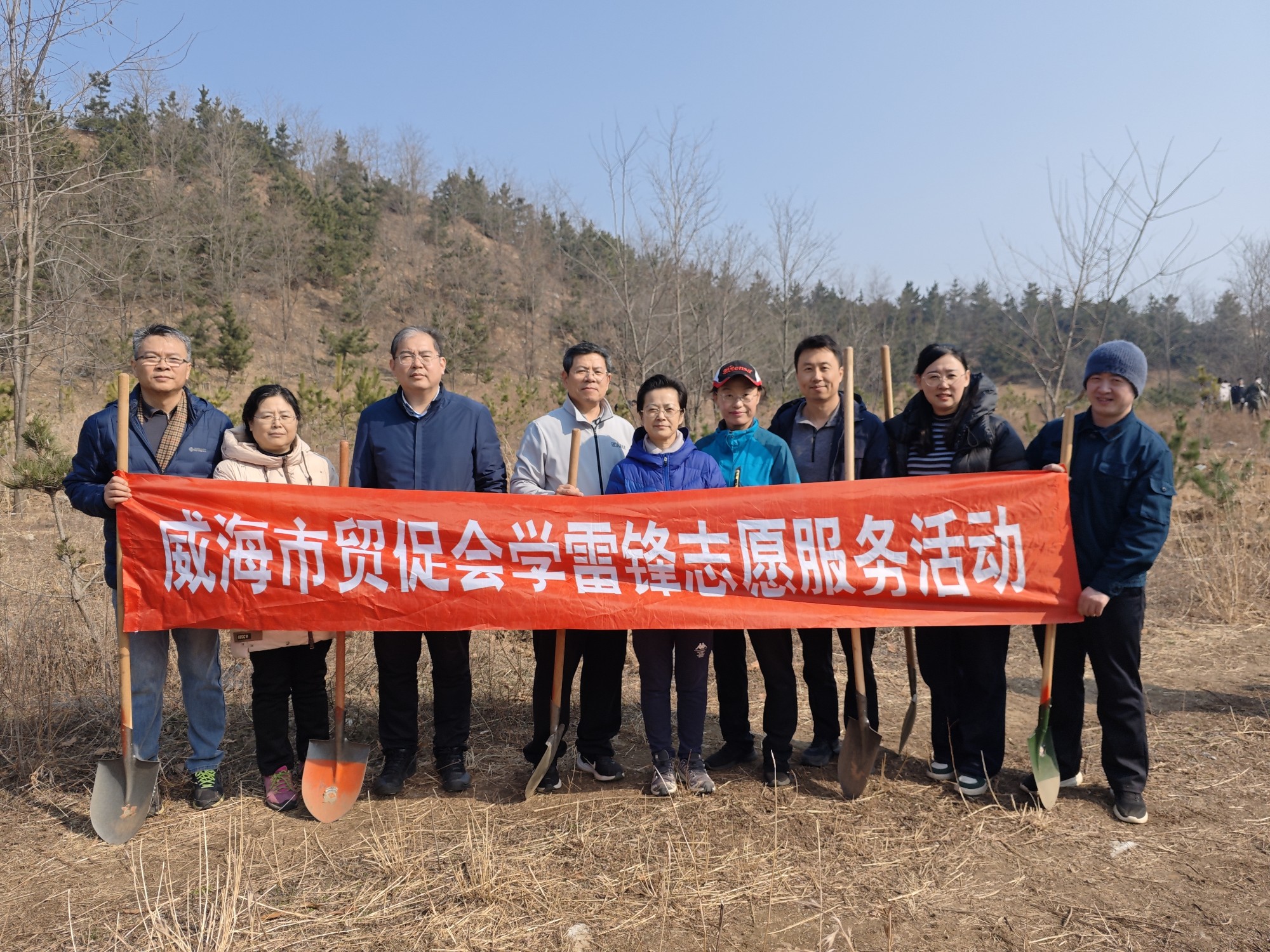 3月12日,市贸促会党员、干部在党组书记杨明锋的带领下,到所联系的崮山镇走访调研并参加义务植树活动。